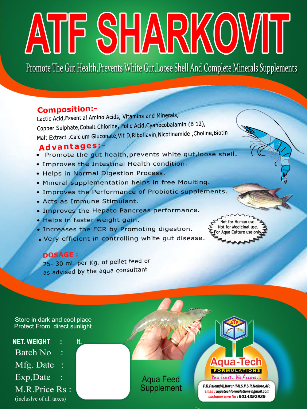 Promote the gut health, prevents white gut, loose shell.